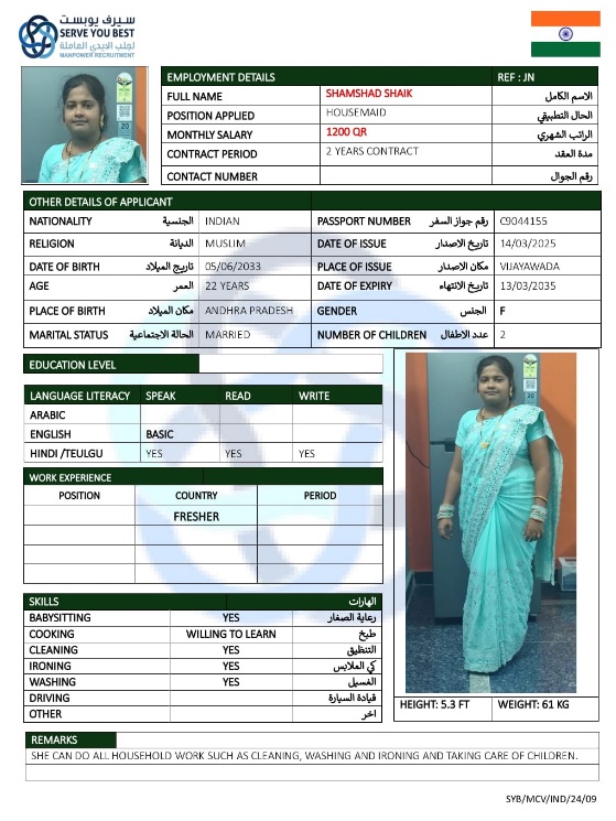 الاسم - عربي SHAMSHAD SHAIK