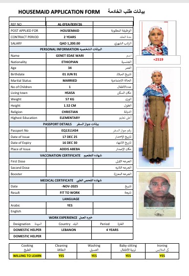 الاسم - عربي GENET EDAE WARI