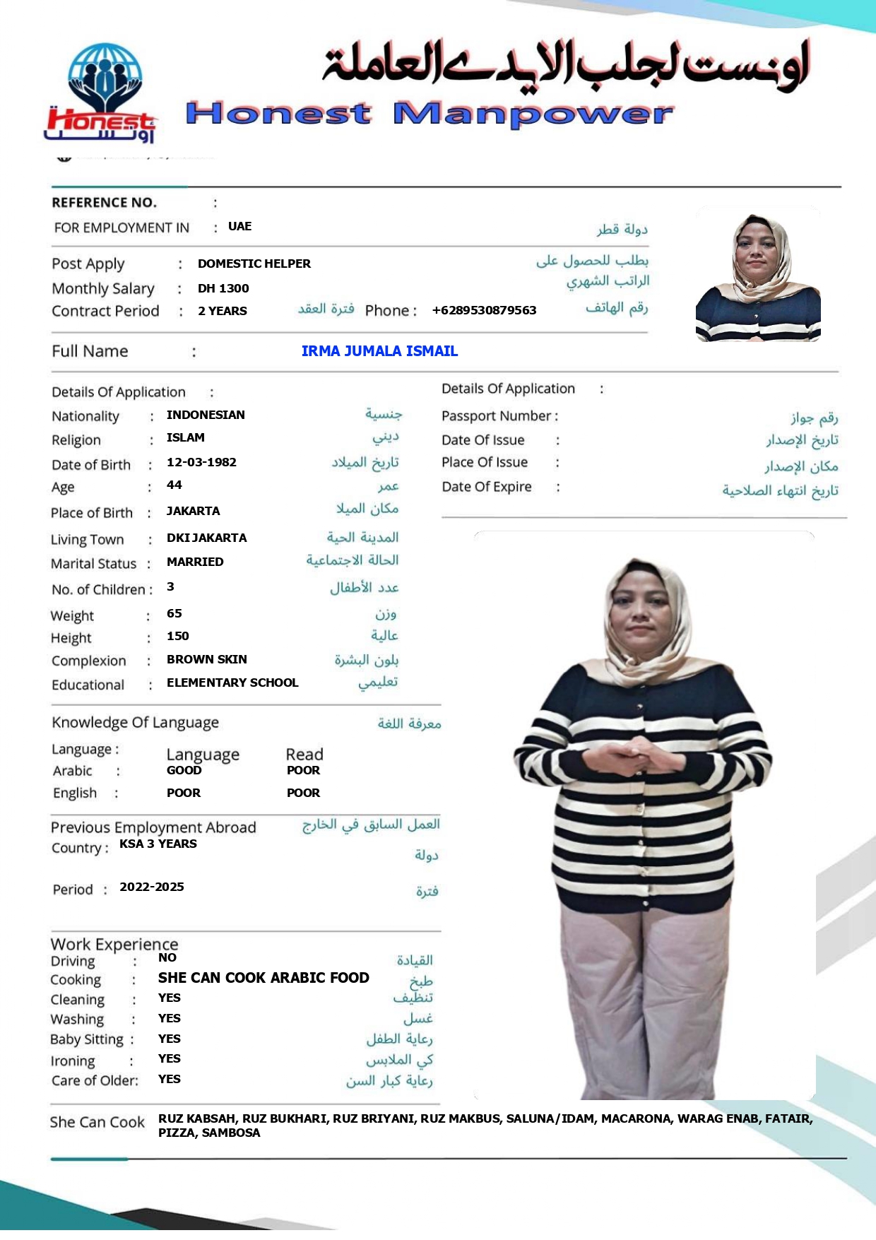 الاسم - عربي IRMA JUMALAH ISMAIL