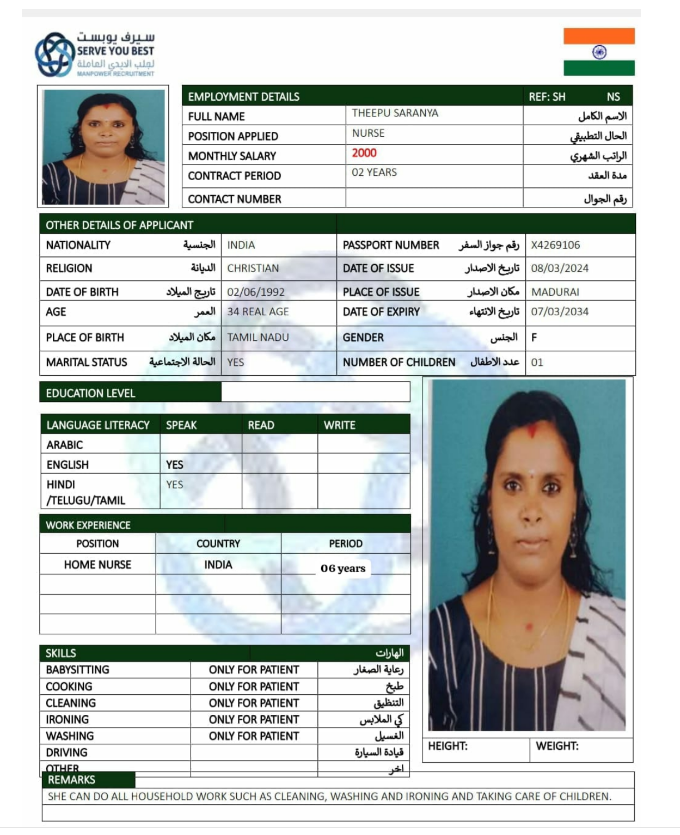الاسم - عربي THEEPU SARANYA