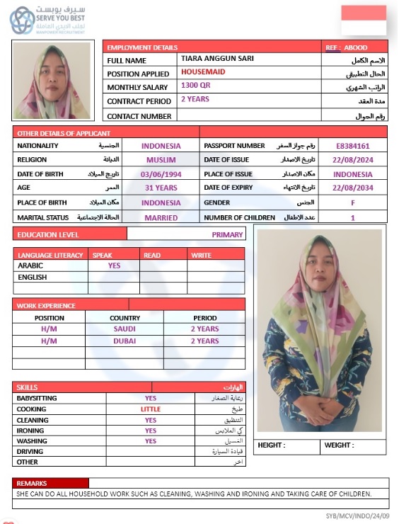 الاسم - عربي TIARA ANGGUN SARI