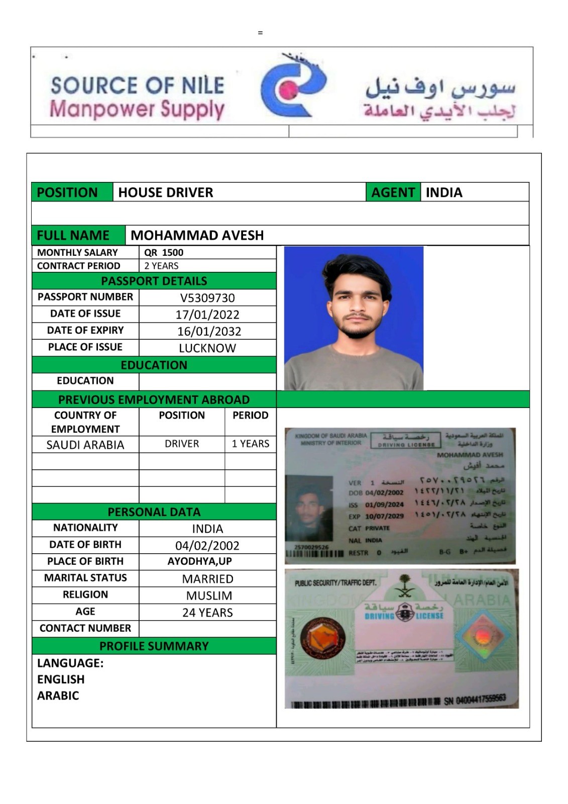 الاسم - عربي MOHAMMAD AVESH