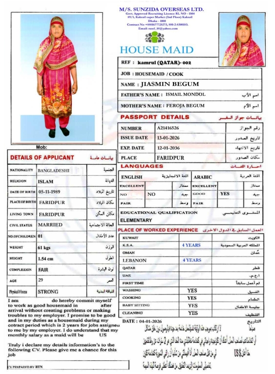 الاسم - عربي JIASMIN BEGOM