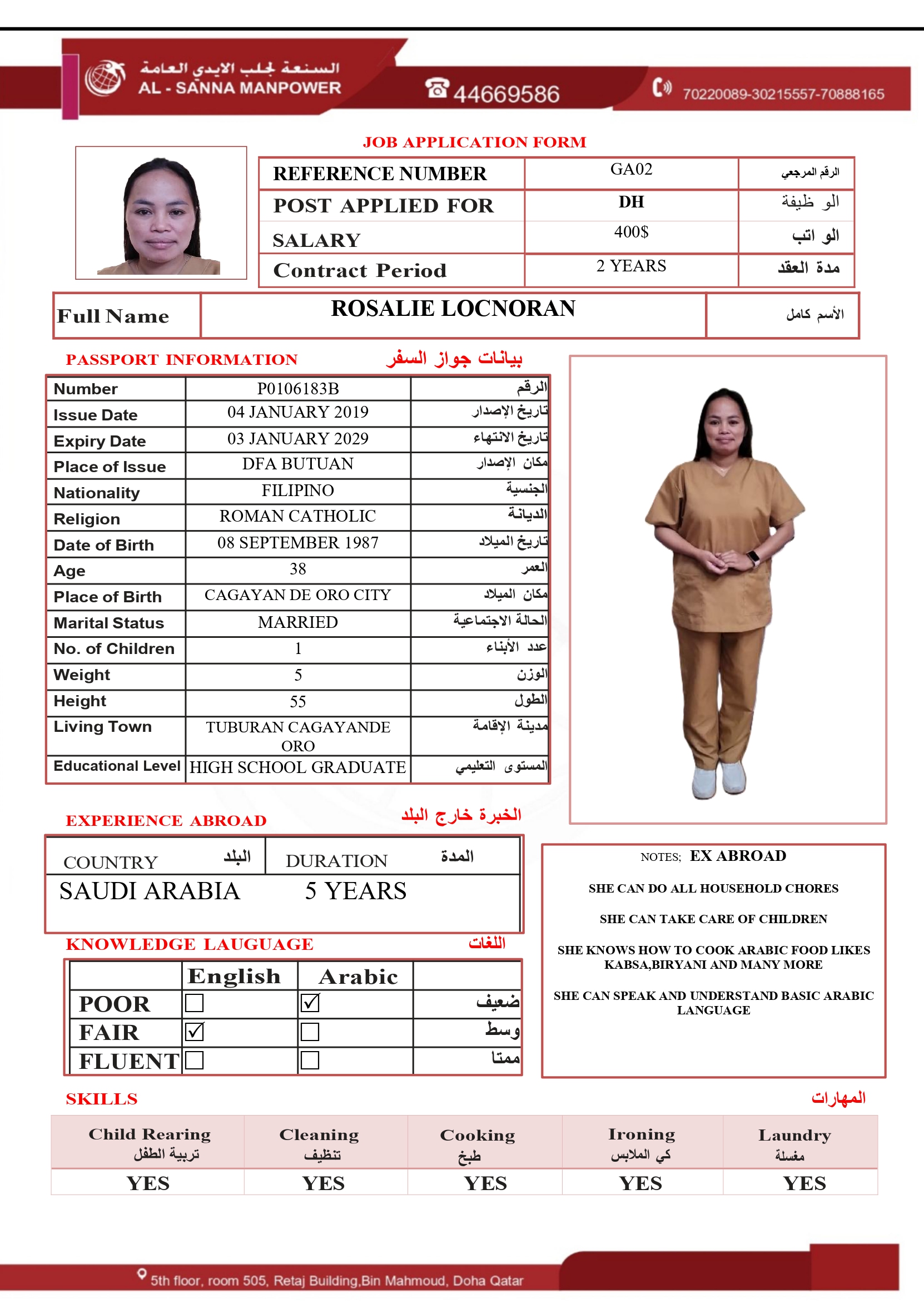 الاسم - عربي ROSALIE LOCNORAN
