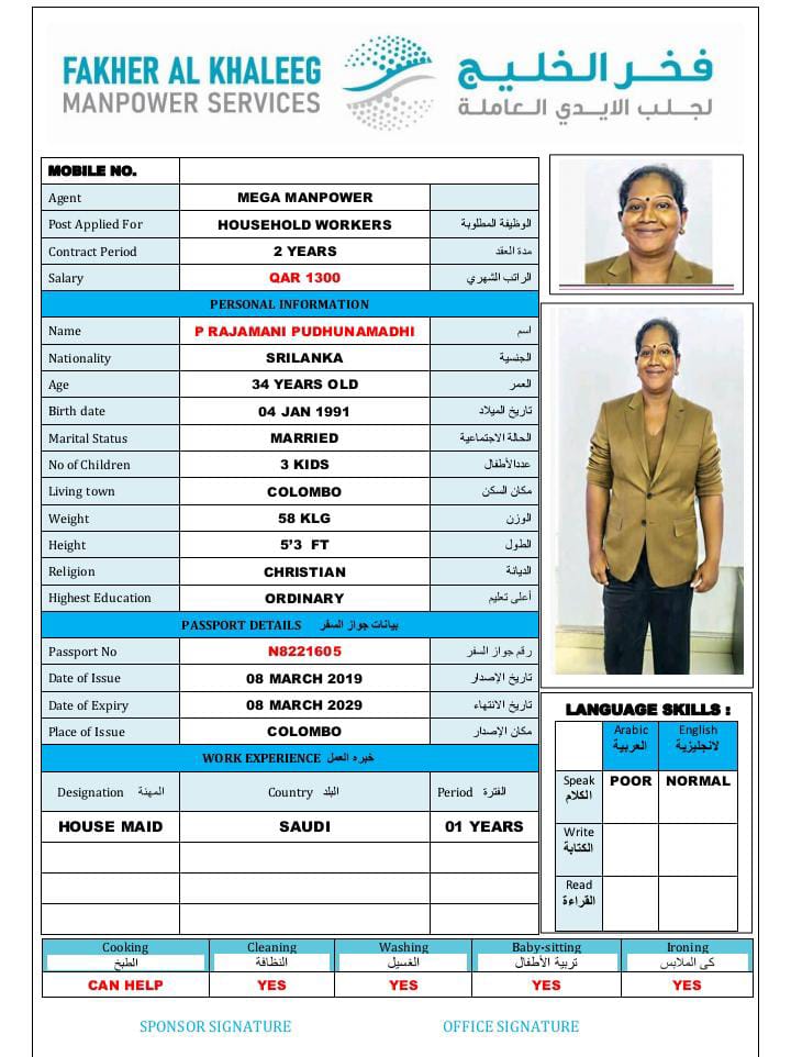 المهنة عاملة منزلية