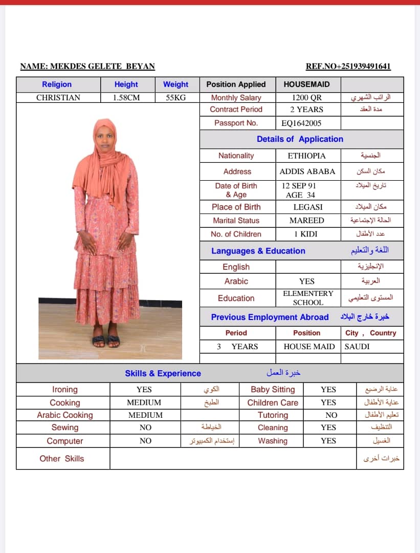 المهنة عاملة منزلية