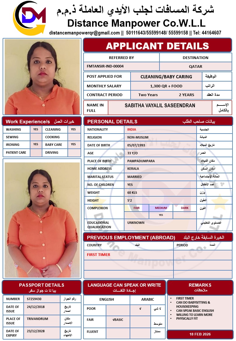 الاسم - عربي سابيتا فاياليل ساسيندران