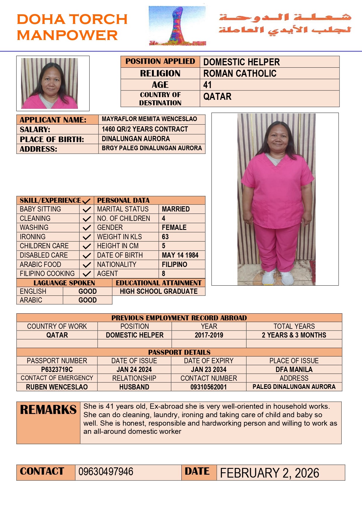 الاسم - عربي MAYRAFLOR MEMITA WENCESLAO