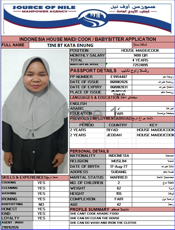 | الاسم - عربي | TINI BT KATA ENUNG |