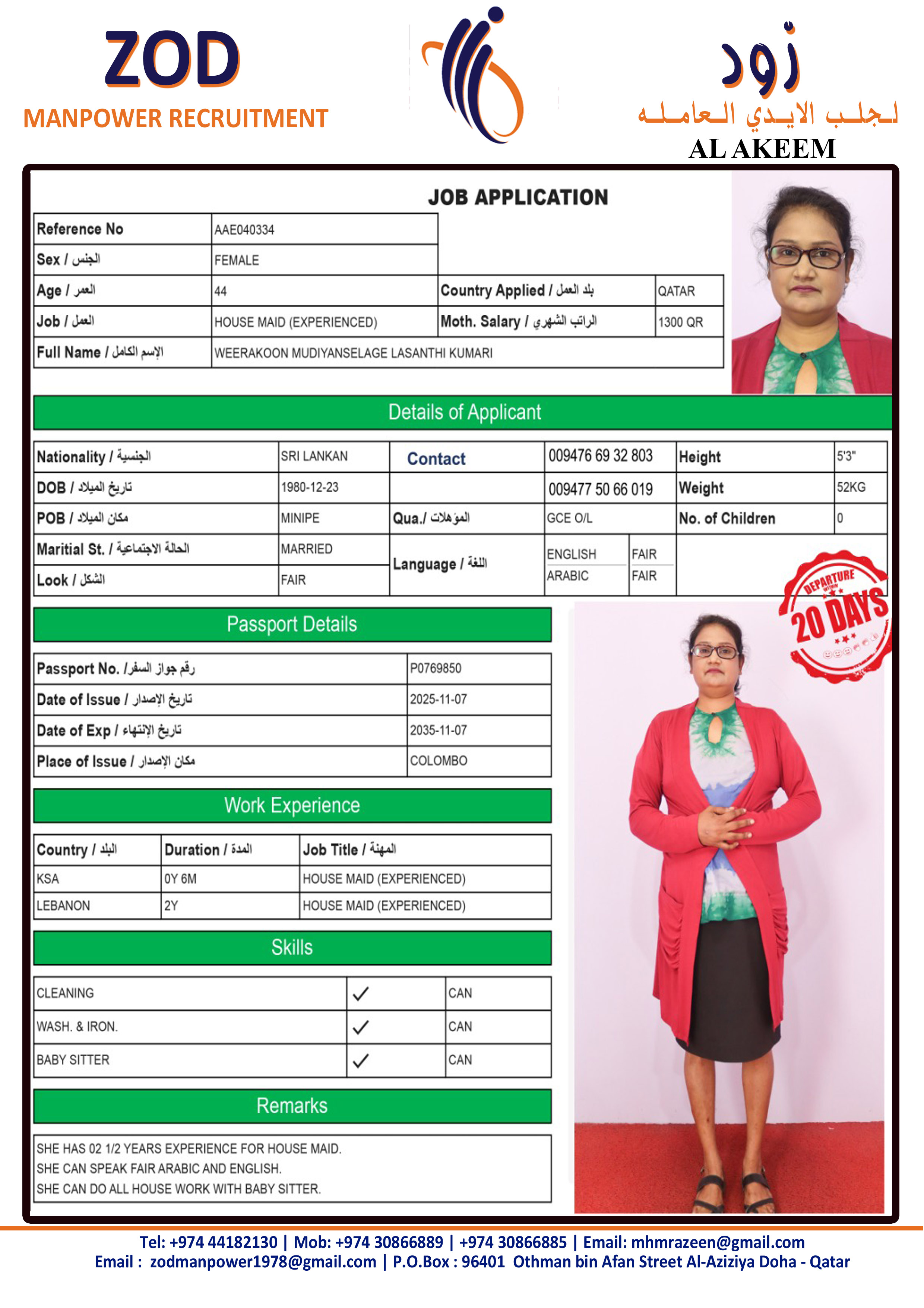 الاسم - عربي LASANTHI KUMARI WEERAKOON MUDIYANSELAGE 23