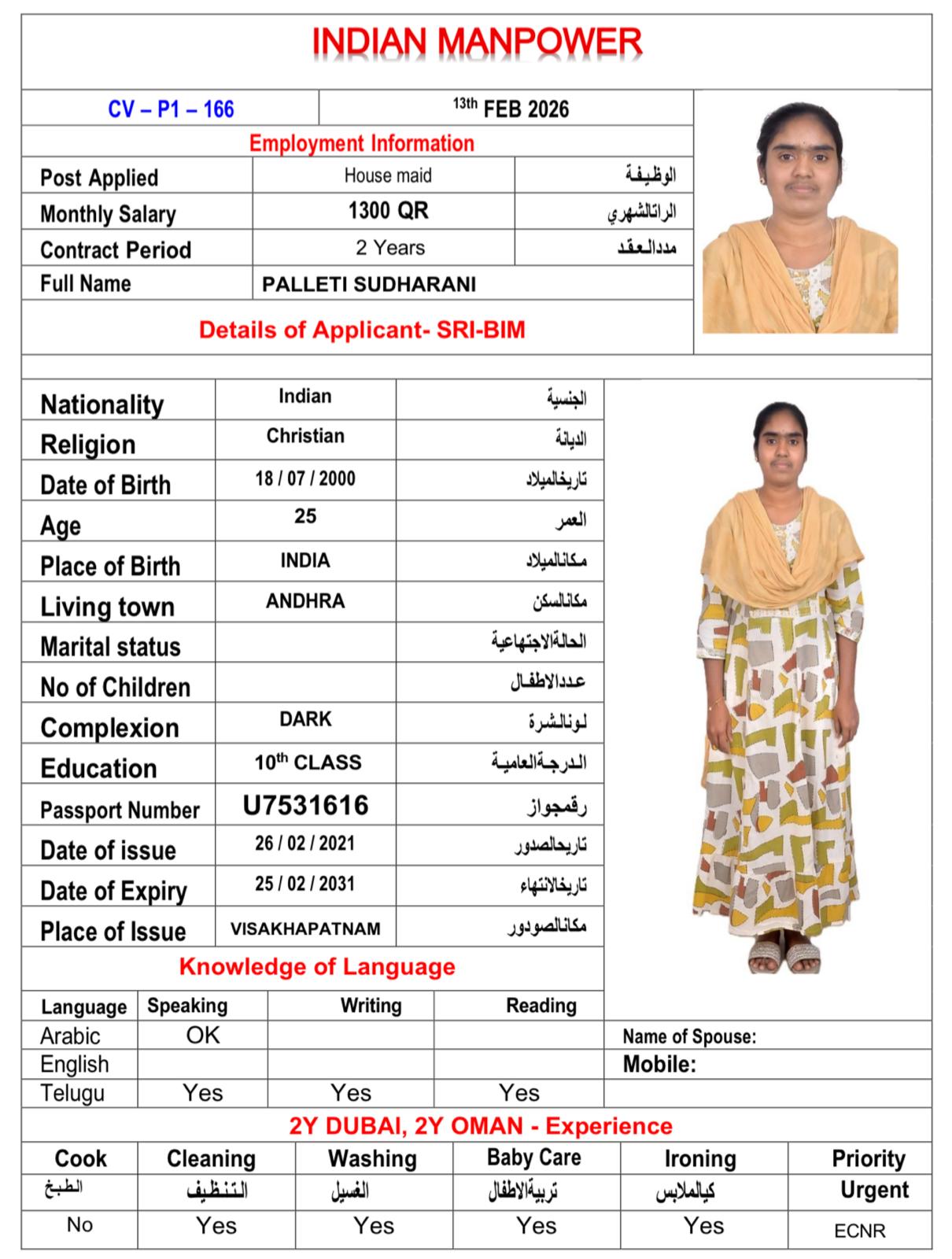 المهنة عاملة منزلية