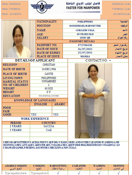 الاسم - عربي CORAZON VEGA