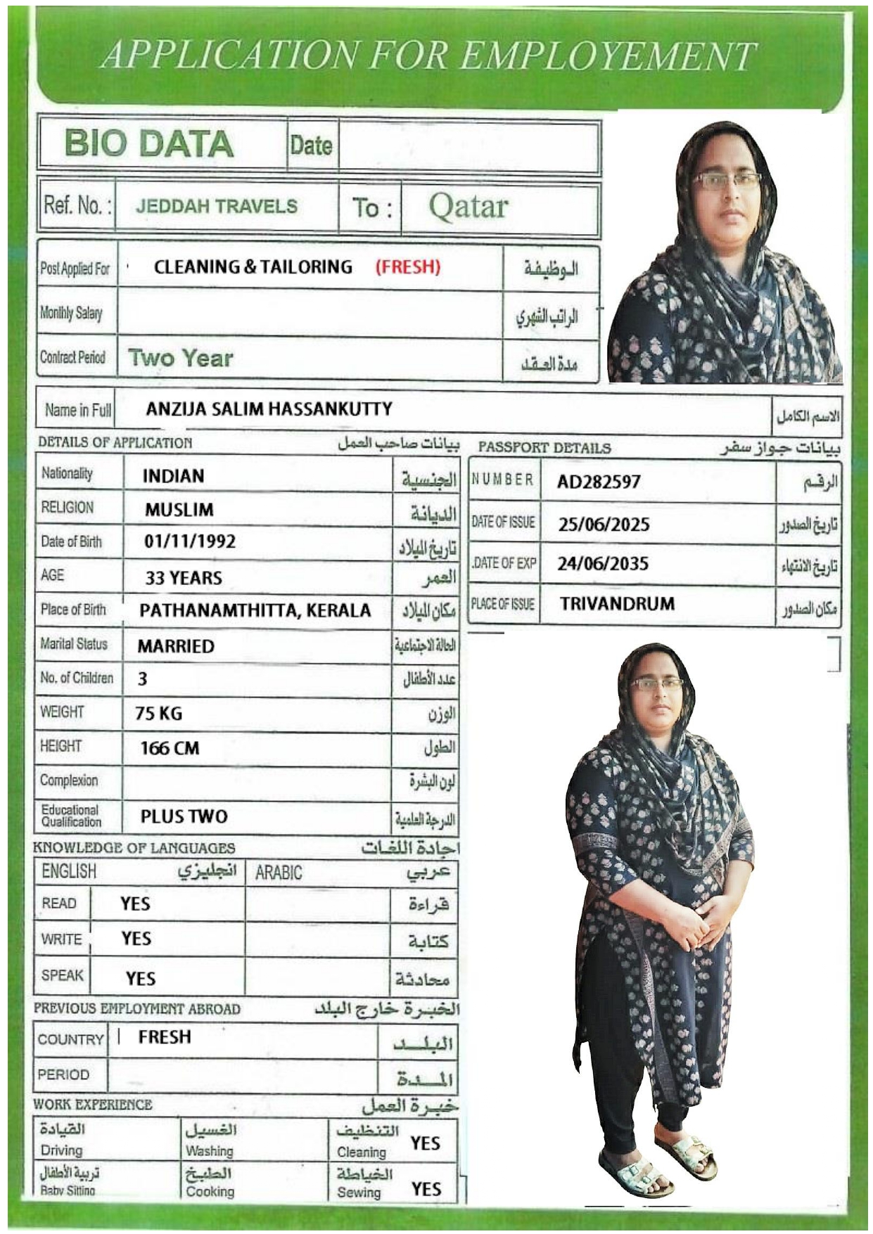 الاسم - عربي أنزيجا سليم حسن كوتي