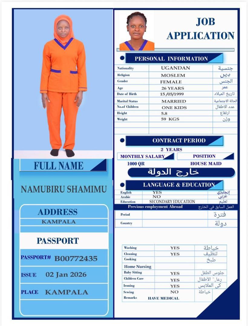 الاسم - عربي SHAMIMU NAMUBIRU