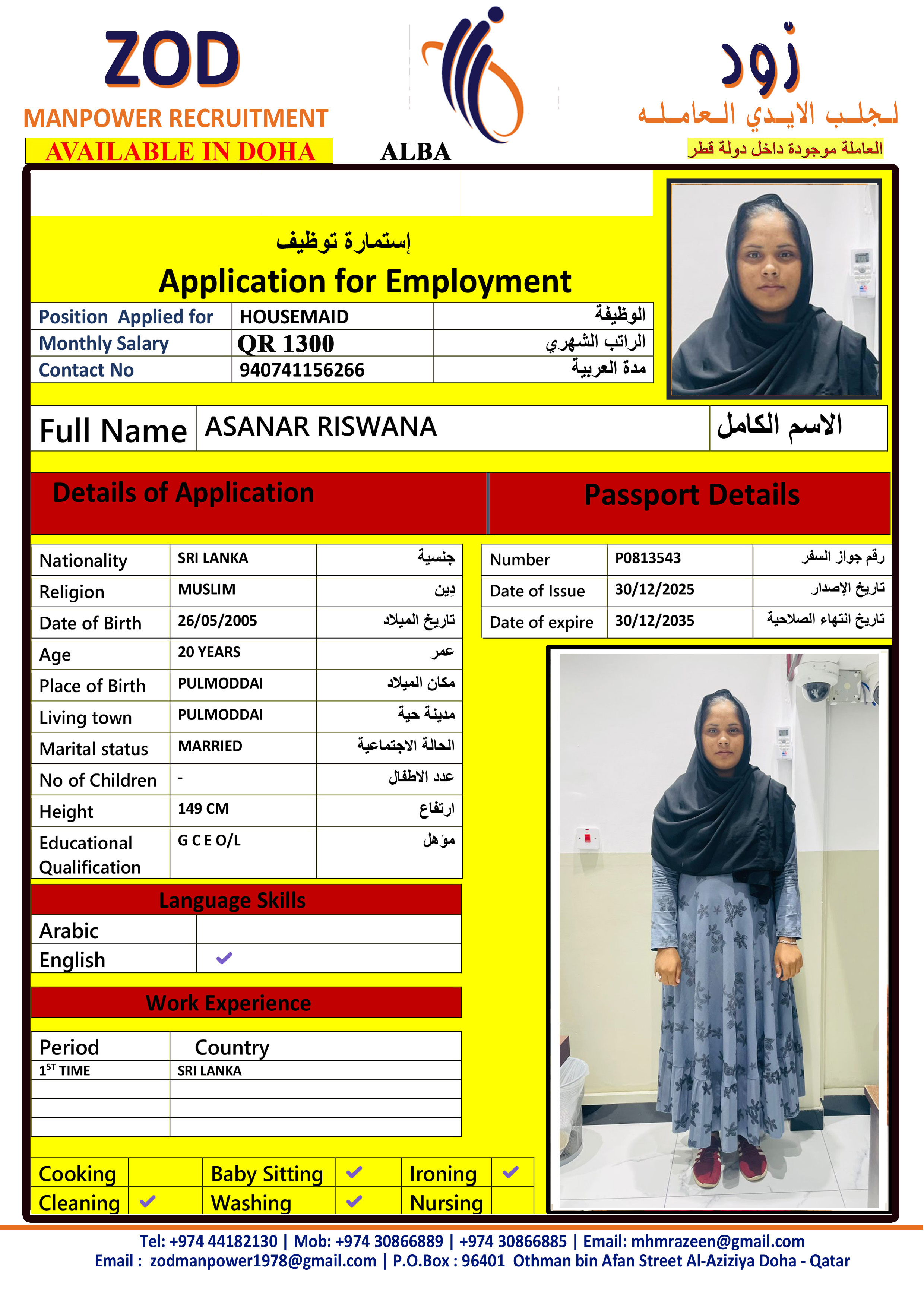 الاسم - عربي first time RISWANA ASANAR srilanka