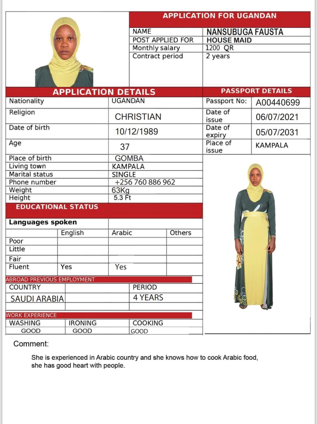طباخة اوغندية طلب استقدام خبرة 4 سنوات السعودية