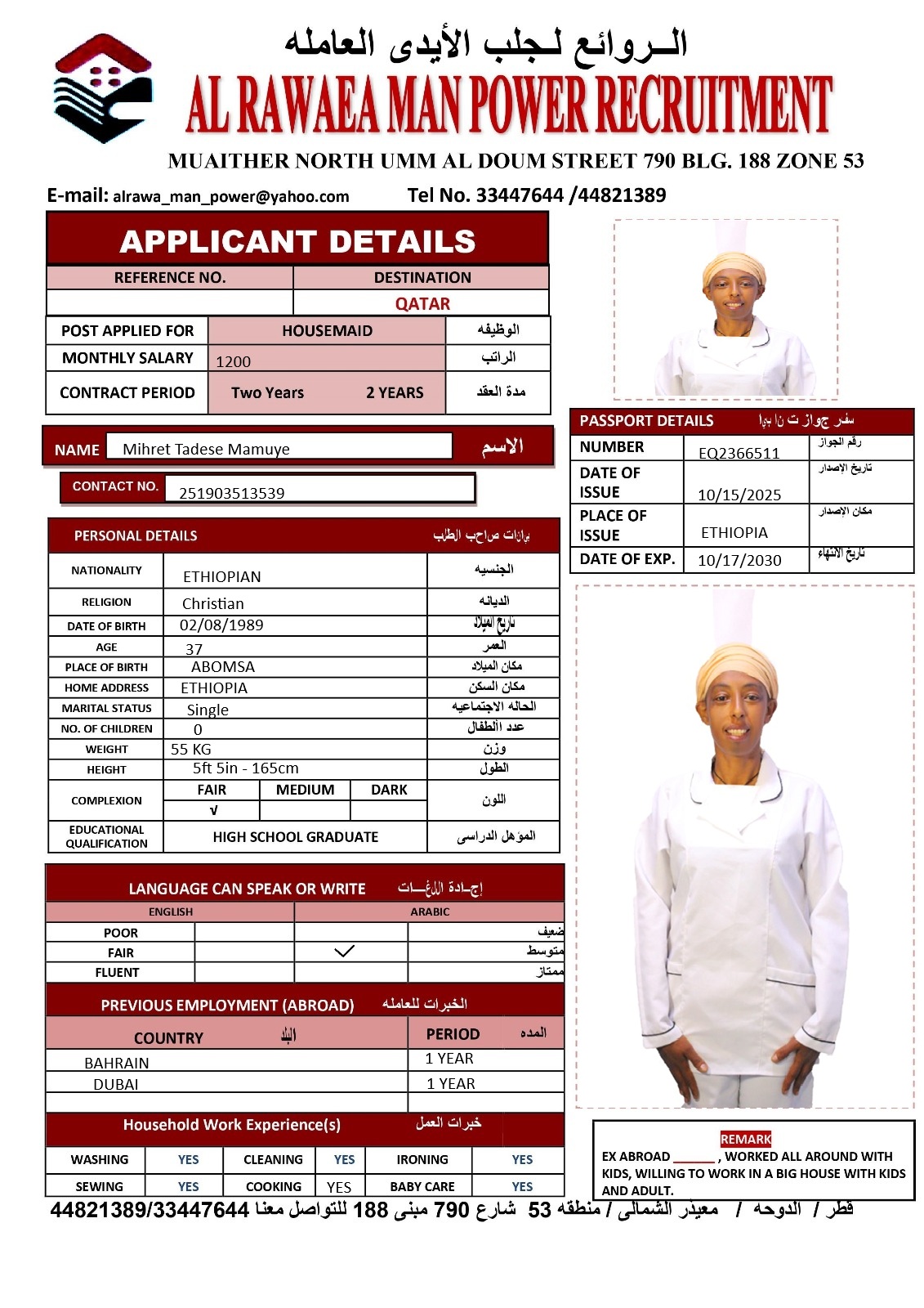 العنوان الدوحه / معيذر الشمالى / شارع ام الدوم منطقه 53 شارع 790 مبنى 188