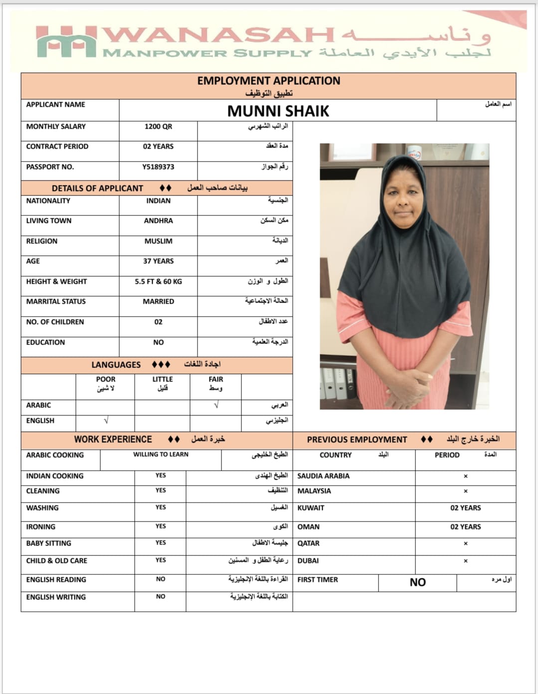 الاسم - عربي MUNNI SHAIK