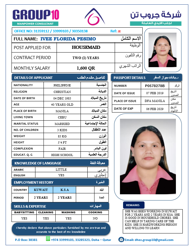 الاسم - عربي IVEE FLORIDA PESIMO