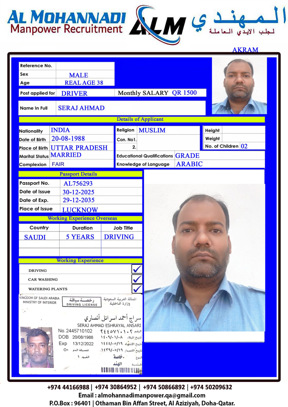 الاسم - عربي SERAJ AHMAD