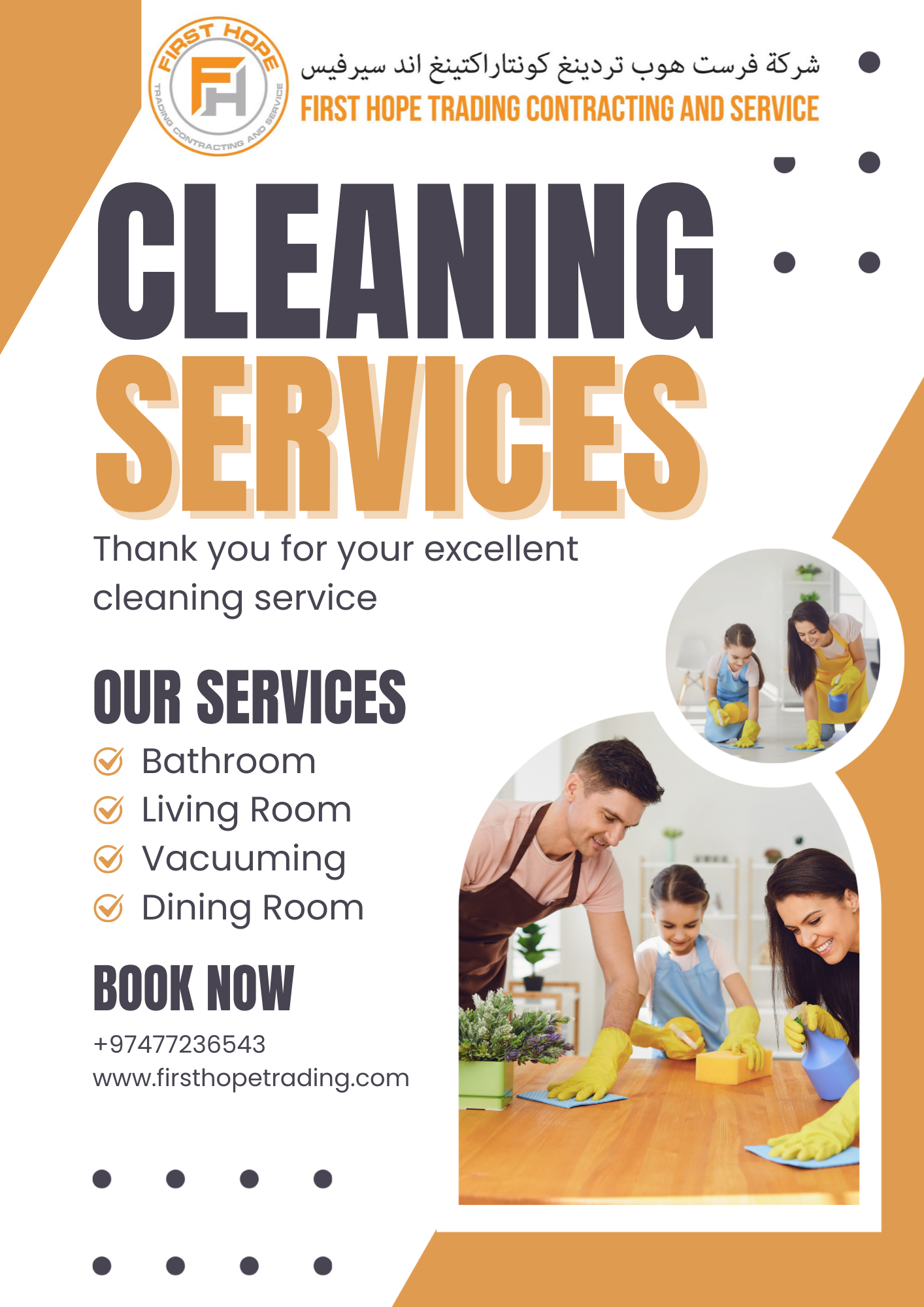 | نوفر خادمات منازل موثوقات ومدرَّبات تدريبًا عاليًا، متاحات بنظام شهري، وقادرات على المساعدة في: • التنظيف العام • رعاية الأطفال • المساعدة في المطبخ • الكي • الغسيل وتنظيف الملابس خدماتنا مرنة ويمكن ترتيبها بالساعة أو يوميًا أو أسبوعيًا أو شهريًا، حسب احتياجاتكم. للمزيد من التفاصيل أو الاستفسارات، يرجى التواصل معنا عبر الواتساب أو الاتصال على: | |