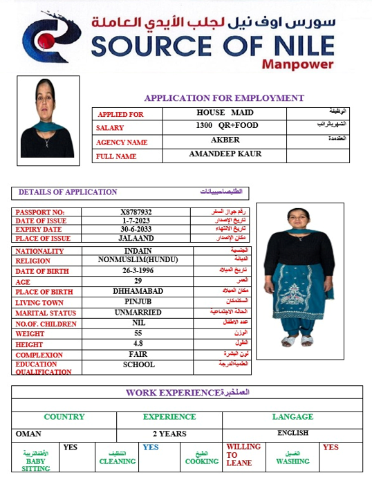 الاسم - عربي AMANDEEP KAUR