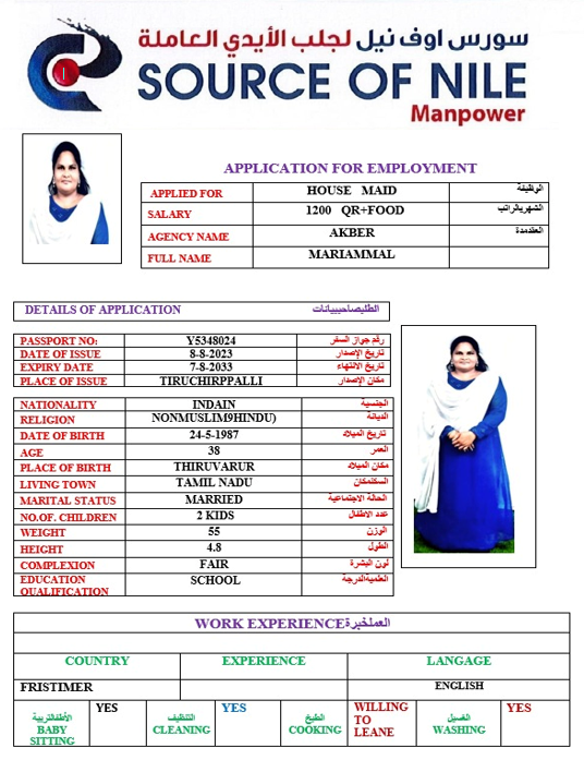 الاسم - عربي MARIAMMAL