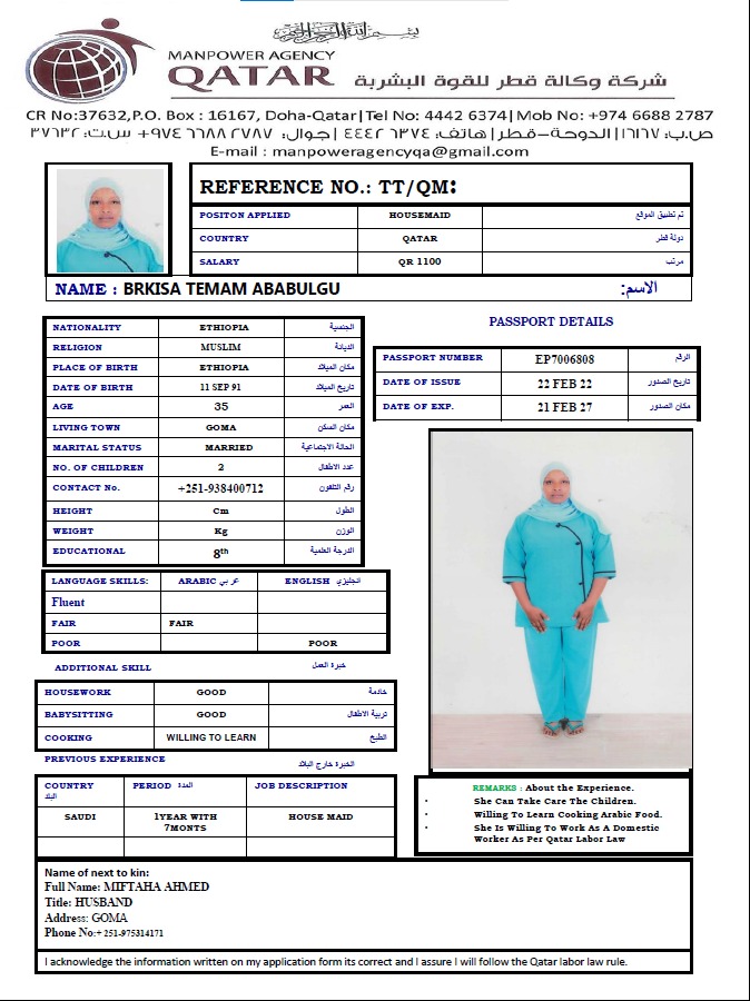 الاسم - عربي بريكيسا تمام أبابلجو