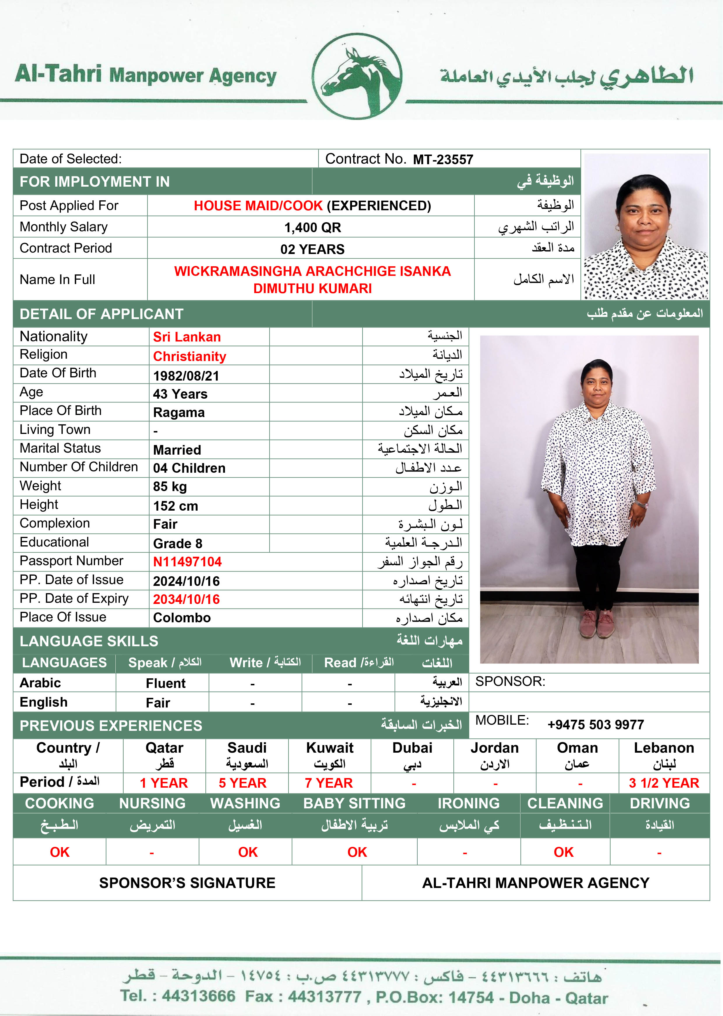 الجنسية سريلانكا