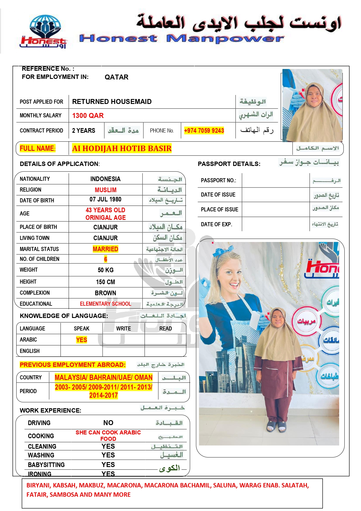 الاسم - عربي AI HODIJAH HOTIB BASIR