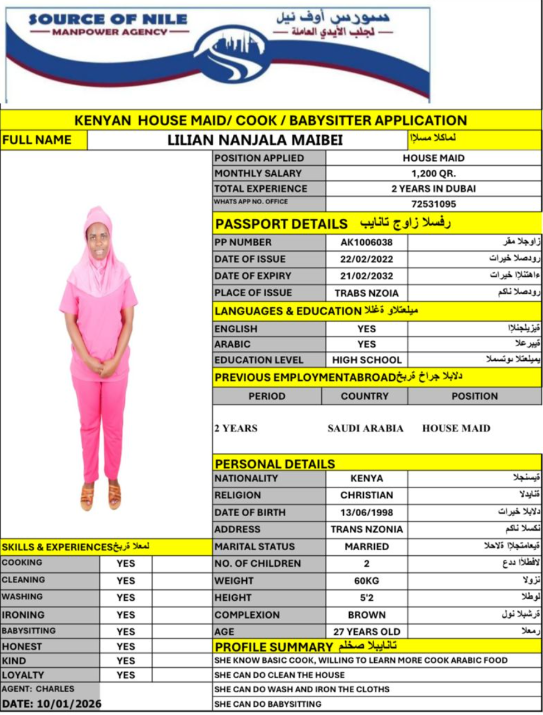 الاسم - عربي LILIAN NANJALA MAIBEI