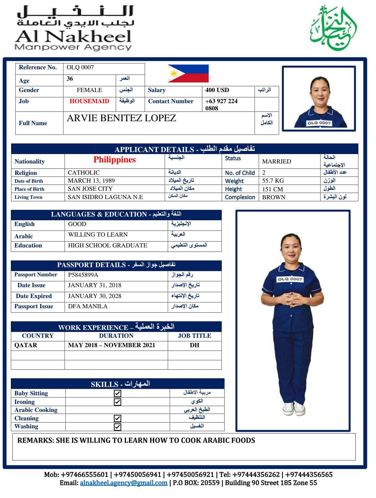 الاسم - عربي ARVIE BENTIEZ LOPEZ
