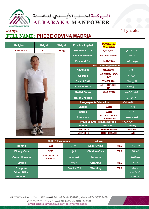 | الاسم | PHEBE ODVINA MADRIA |