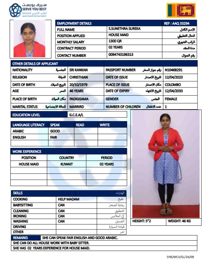 الجنسية سريلانكا