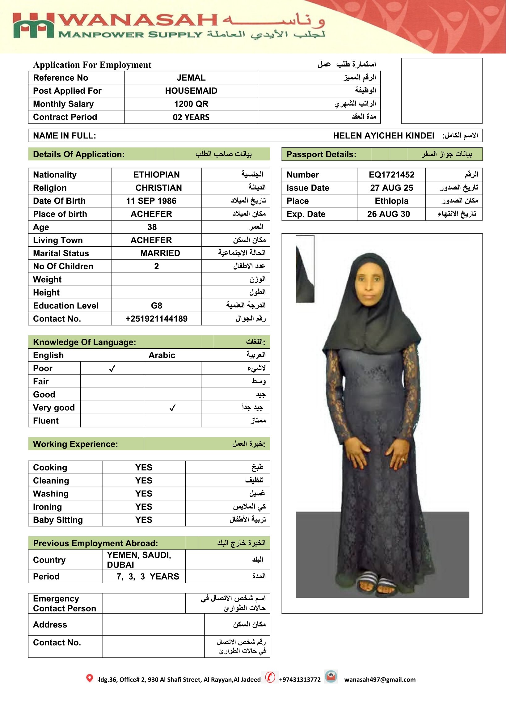 الاسم - عربي HELEN AYICHEH KINDE