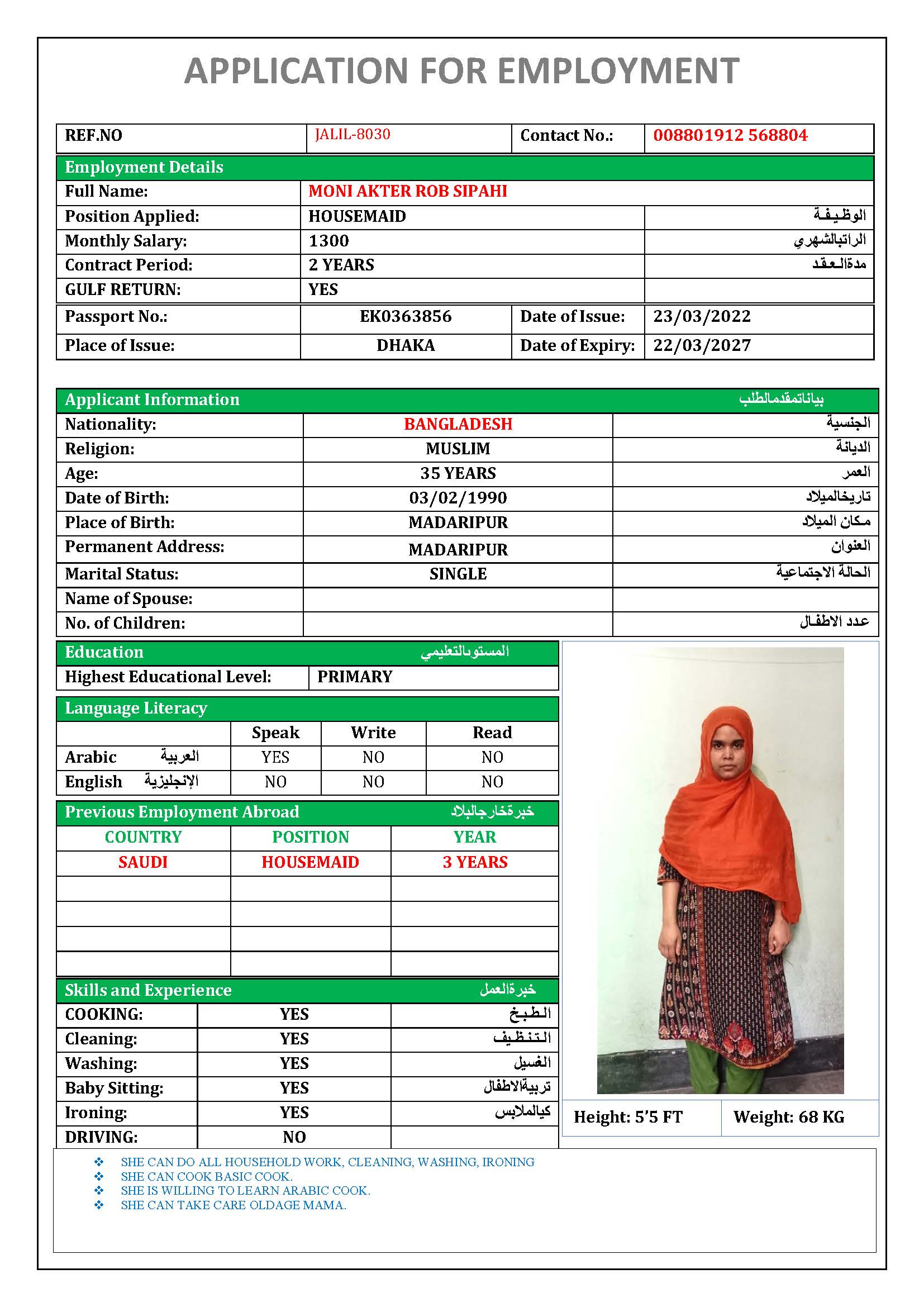 المهنة عاملة منزلية