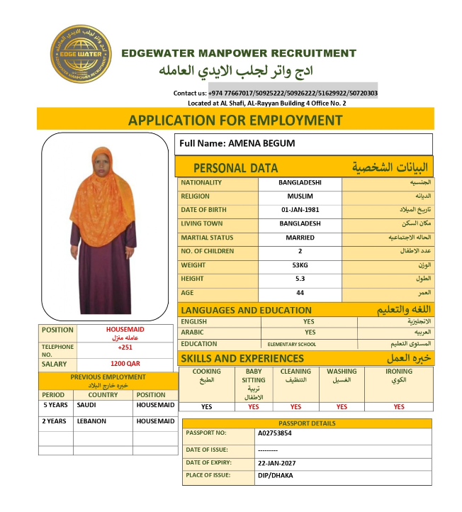 الاسم - عربي AMENA BEGUM
