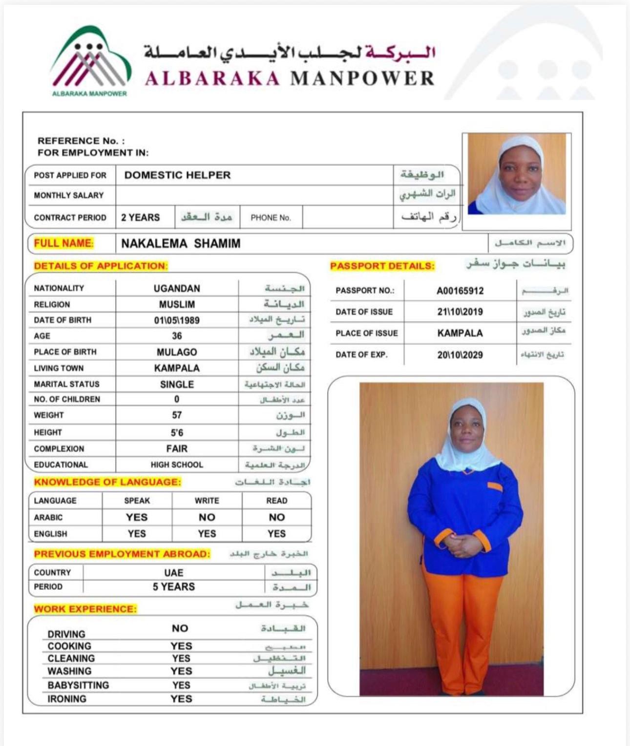 الاسم - عربي SHAMIM NAKALEMA