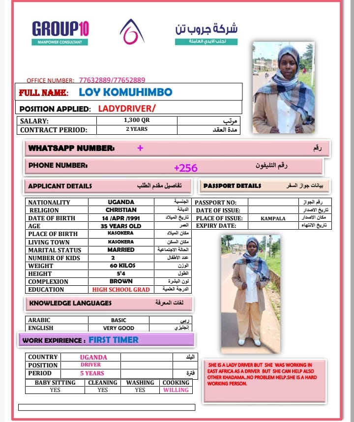 الاسم - عربي LOY KOMUHIMBO/ LADY DRIVER UGANDA