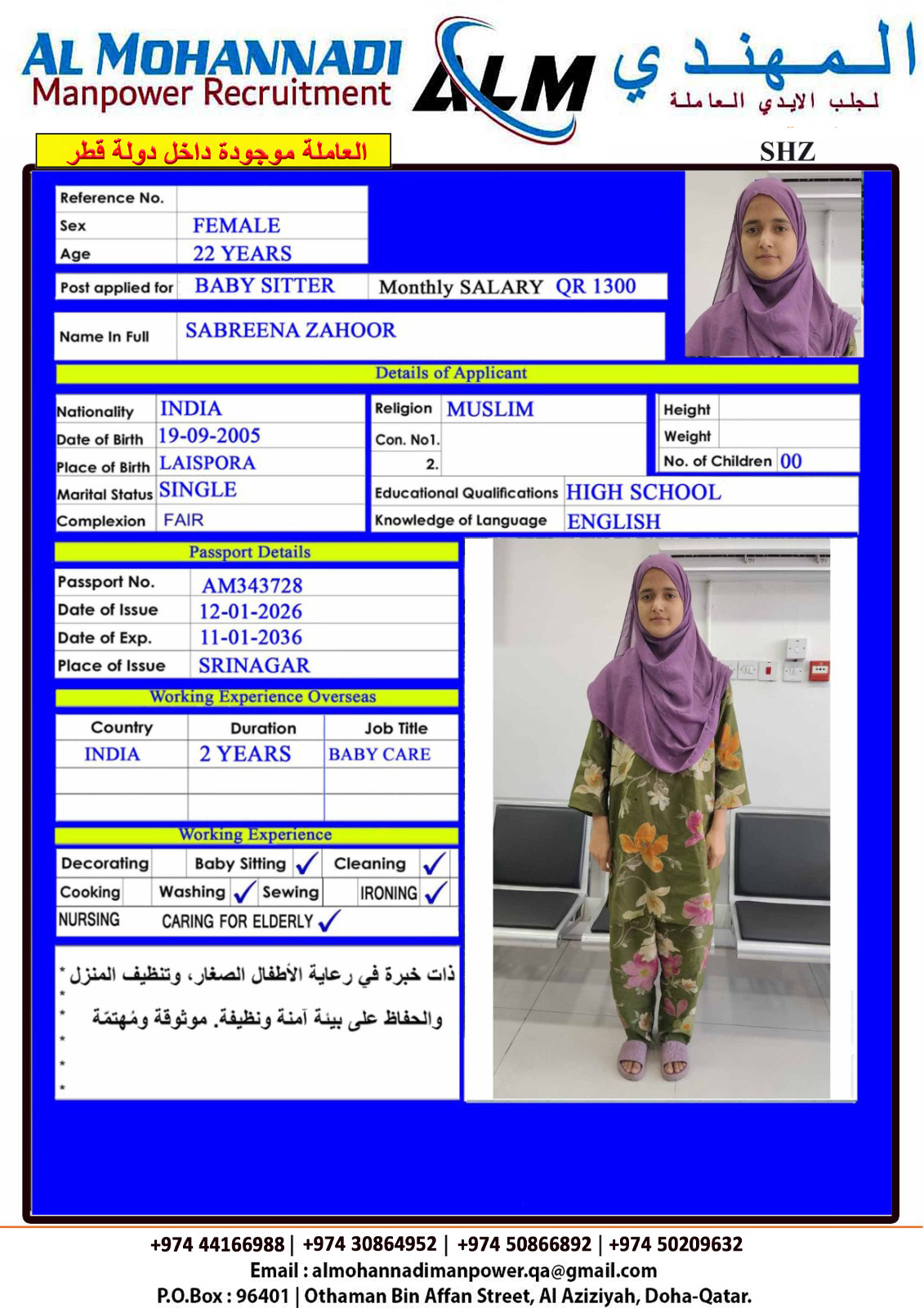 الاسم - عربي SABREENA ZAHOOR