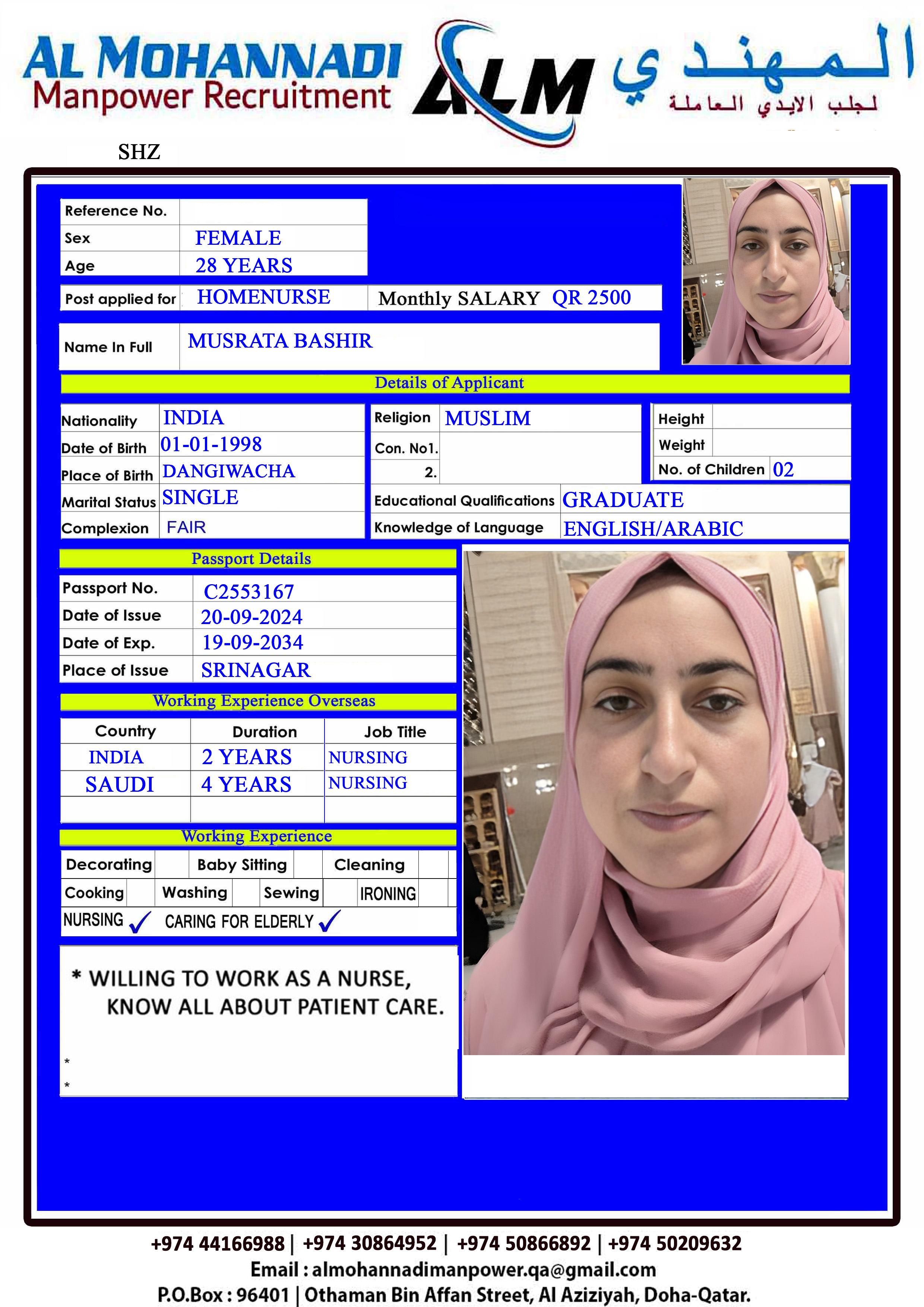 البريد الإلكتروني almohannadimanpower.qa@gmail.com