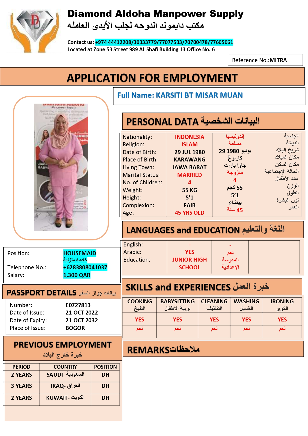 الشركة ‏ دايموند الدوحة لجلب الايدى العاملة
