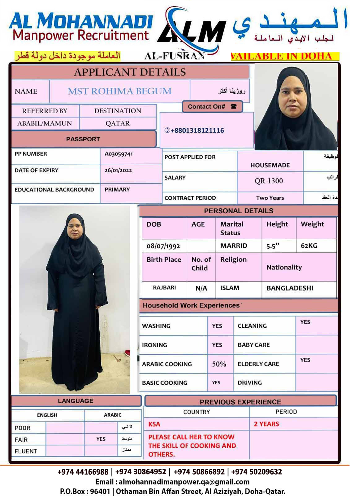 البريد الإلكتروني almohannadimanpower.qa@gmail.com