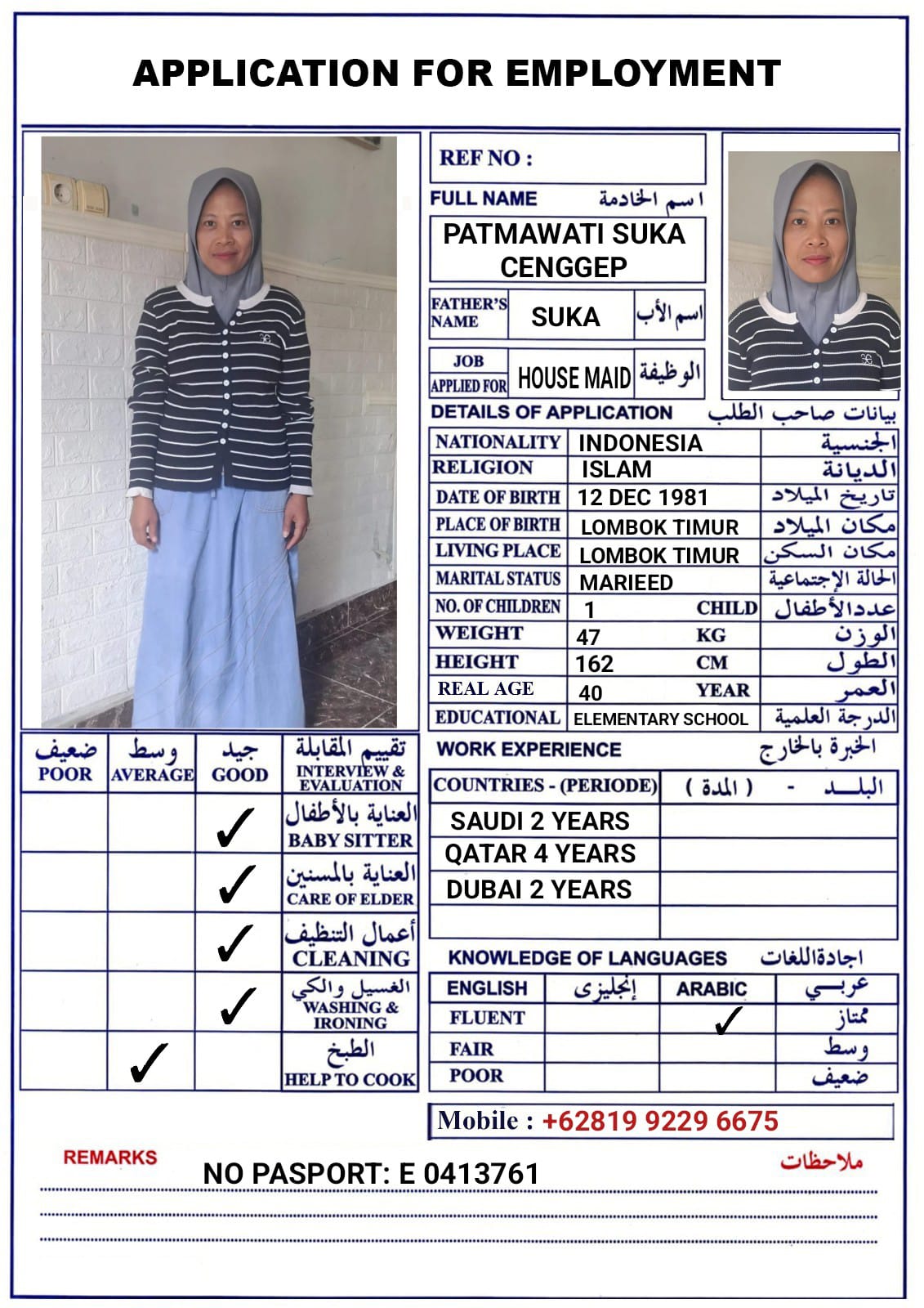 الاسم - عربي PATMAWATI SUKA CENGGEP