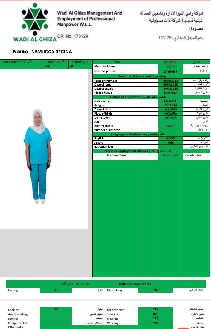 المهنة عاملة منزلية