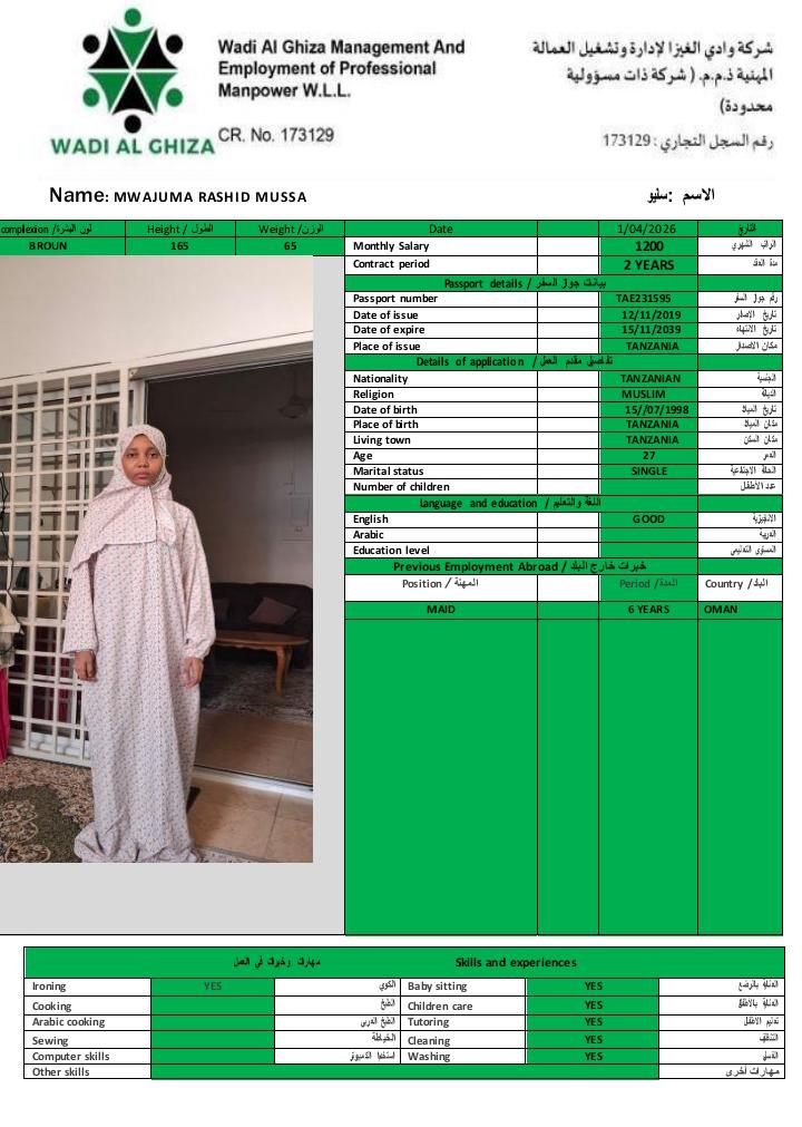 الاسم - عربي MWAJUMA RASHID MUSSA