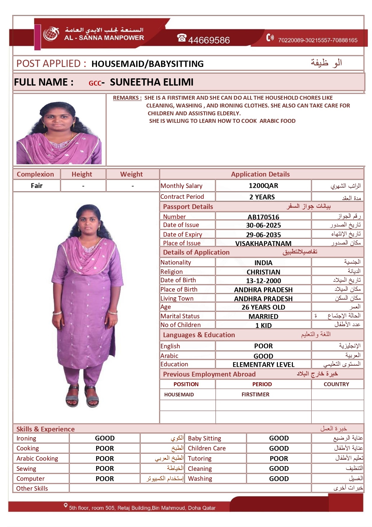 الاسم - عربي SUNEETHA ELLIMI