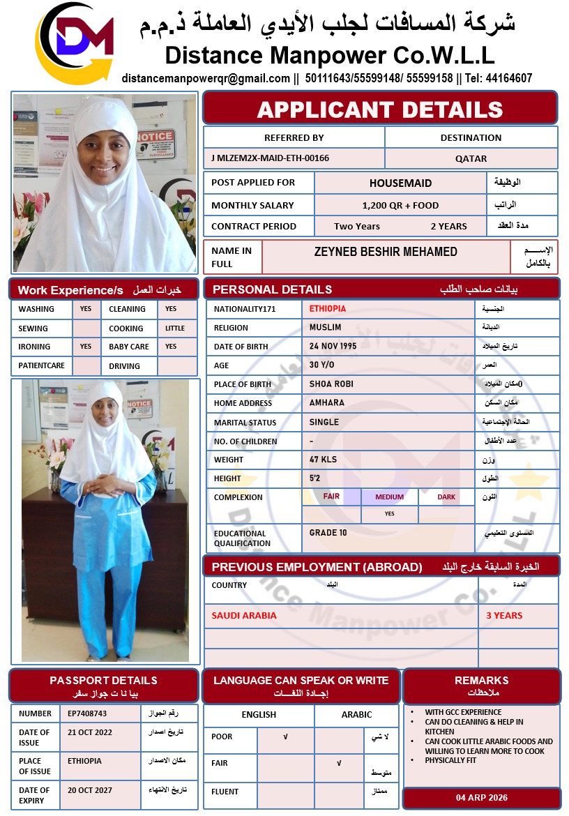 الشركة ‏ المسافات لجلب الايدي العاملة H