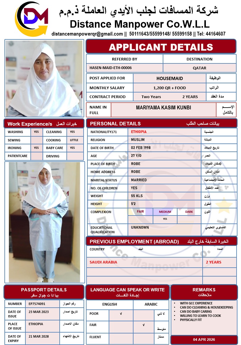 الشركة ‏ المسافات لجلب الايدي العاملة H