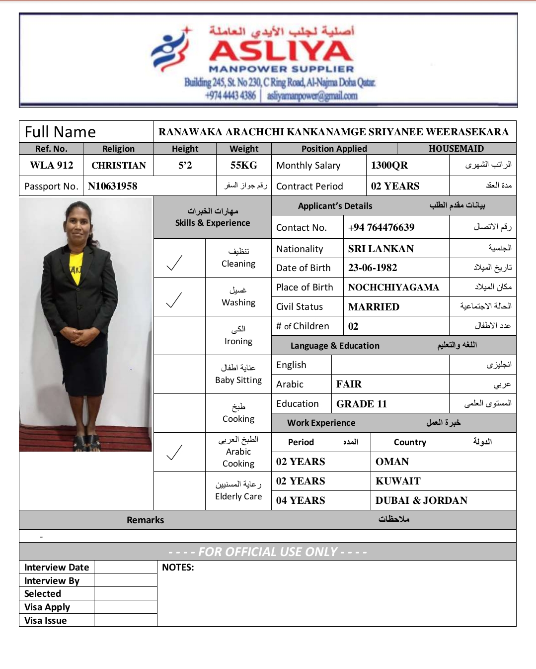 الاسم - عربي سرياني ويراسيكارا رانواكا أراتشي كانكانامجي